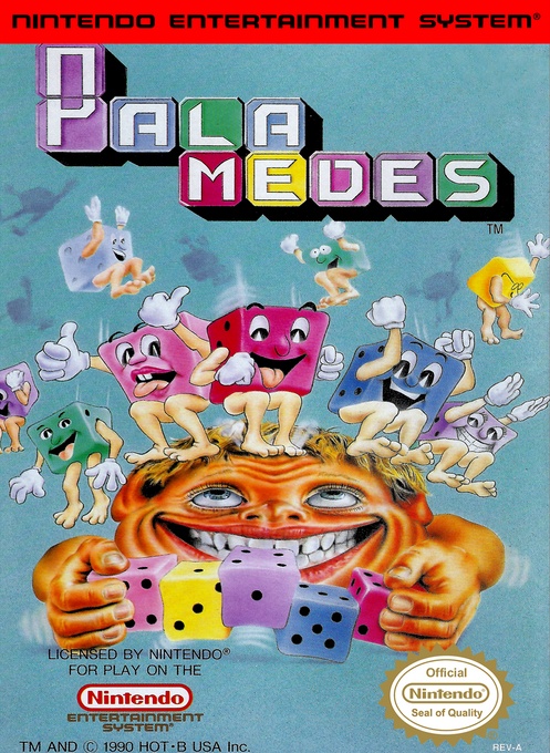 Palamedes 的目標是清除螢幕,螢幕上一行一行地佈滿了骰子。玩家控制位於螢幕底部附近的一個小人,該人只能向左或向右移動。可以透過B按鈕改變人持有的骰子數量,按下A按鈕會將骰子向上發射。如果骰子擊中另一個具有匹配數字的骰子,則目標骰子將從遊戲區域消失並添加到螢幕底部的一列中。將至少三個相同數字或連續數字的骰子排列在底行後按下,將一次消除最多五行。 共有三種遊戲模式: 標準單人模式,要求玩家摧毀一定數量的線路才能進入下一階段;玩家必須與許多由 CPU 控制的對手決鬥的錦標賽模式和兩人模式。