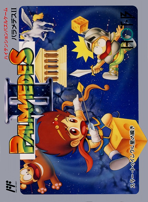 这是《帕拉梅德斯II - 星闪烁,星之眨眼》的FC益智游戏,于1991年由Jaleco在日本发行,是经典“砖块消除”游戏《帕拉梅德斯》的续作。游戏核心玩法是“数字砖块消除”:屏幕上方落下带有数字的砖块,玩家发射数字砖块,当3个或以上相同数字的砖块相连时消除,同时触发连锁反应获得高分。续作新增“星星系统”(消除特定砖块获得“星星”,积累星星可释放特殊技能,如全屏消除、砖块减速);扩展“游戏模式”(新增“故事模式”“无尽模式”“双人对战模式”);优化“连锁判定”(增加连锁奖励,鼓励玩家创造高连锁消除)。画面采用星空主题风格,砖块和背景充满星空元素,消除效果华丽,音效使用轻快的电子音乐,节奏随游戏进度加快。游戏在日本FC益智游戏市场获得广泛好评,成为砖块消除类游戏的代表作之一,适合各年龄段玩家。 |