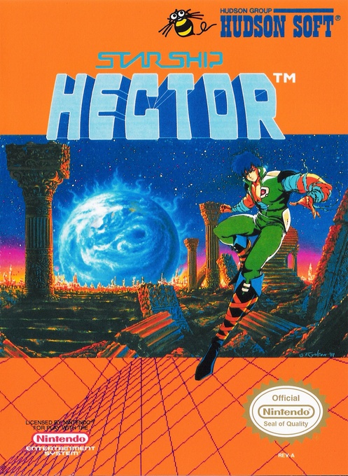 美国 FC 正版太空射击游戏《赫克托星舰》,经典街机移植。玩家操控赫克托星舰对抗外星舰队,核心为竖版卷轴射击,支持火力升级与道具收集,移植后优化了 FC 平台的射击手感,保留街机的经典弹幕设计,是 FC 射击的经典作。