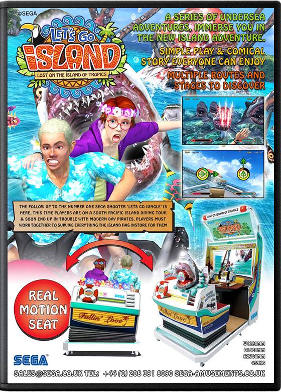 SEGA 推出的街机光枪射击游戏,作为《Let's Go Jungle》系列续作,主打热带岛屿冒险主题,延续系列经典双人协作玩法。游戏讲述主角 Beth 和导游 Zack 在乘船游览时,遭遇被鲨鱼追击的海盗撞击,落水后漂流到一座热带岛屿,岛上野生动物因异常变得狂暴,两人需携手逃离岛屿。核心玩法为轨道式光枪射击,玩家无需控制角色移动,只需瞄准狂暴动物、海盗等目标射击,融入 “即时反应按键” 机制,关键时刻需按提示按键躲避危险。赛道包含废弃度假村高尔夫球场、酒店度假村、地下洞穴夜总会三个可选场景,支持双人联机协作,配备震动光枪,画面采用高清写实风格,热带岛屿的植被、水景细节细腻,打击感扎实,兼顾射击爽感与冒险趣味性。