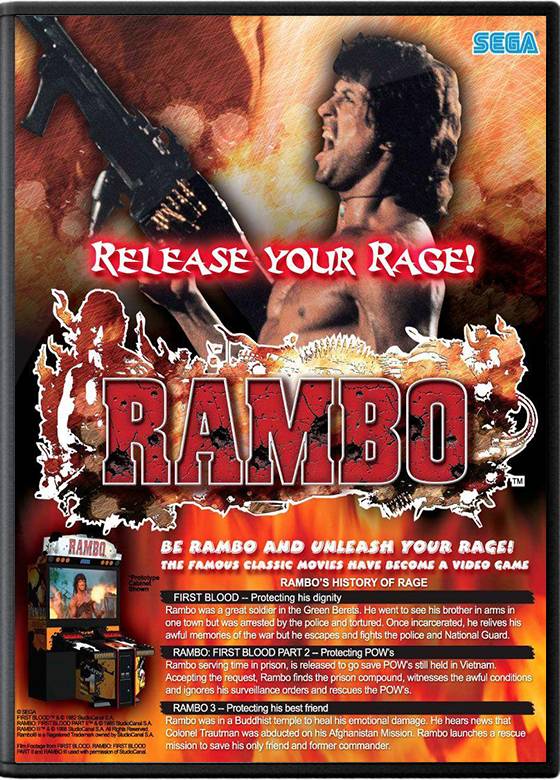 基于《第一滴血》IP 改编的街机光枪射击游戏,由 Konami 发行,主打硬核军事射击与热血冒险氛围,还原电影中兰博的孤胆英雄形象,适配射击爱好者与 IP 粉丝。游戏背景承接电影剧情,玩家扮演兰博,深入敌方营地、丛林、军事基地等危险场景,完成解救人质、摧毁敌方设施、反击敌人围剿等高危任务,剧情复刻电影经典桥段,氛围感拉满。核心玩法为轨道式光枪射击,支持双光枪操作,可切换步枪、机枪、火箭筒等多种军事武器,不同武器对应不同场景需求,火箭筒可摧毁大型目标与障碍物。关卡设计紧张刺激,融入即时反应机制,关键时刻需按提示按键躲避敌人攻击、完成攀爬等动作,BOSS 战为巨型军事装备或敌方首领,极具挑战性。街机配备震动光枪,操作反馈扎实,画面采用写实风格,场景与人物建模细腻,战斗特效逼真,支持双人联机协作,兼顾射击爽感与 IP 情怀,是军事题材光枪射击街机的经典之作。 |